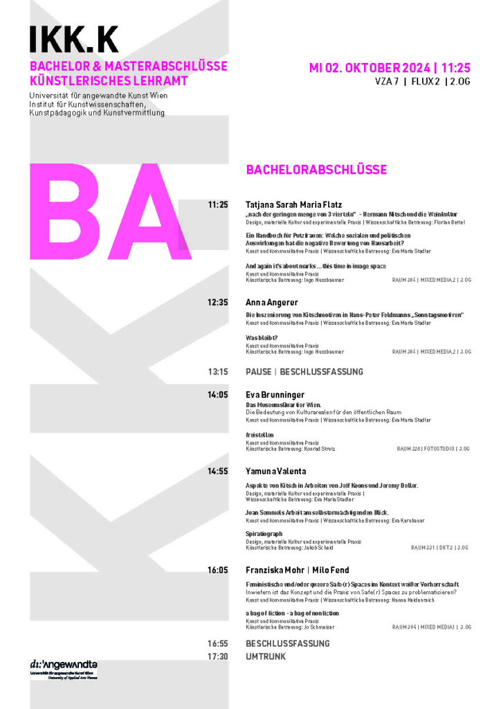 BA & MA PRÜFUNGSTERMINE